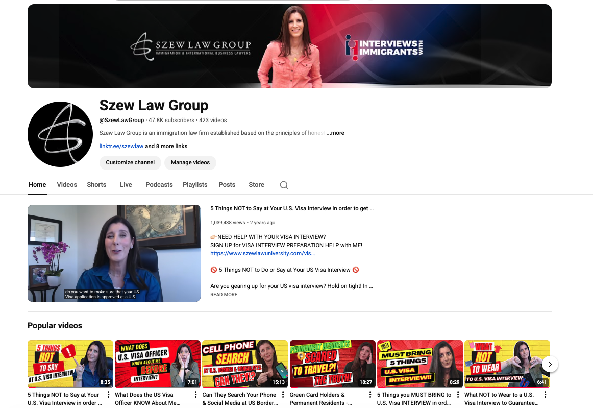 Andrea shares free immigration tips, real case insights, and interview strategies on her popular YouTube channel — trusted by thousands of viewers worldwide.